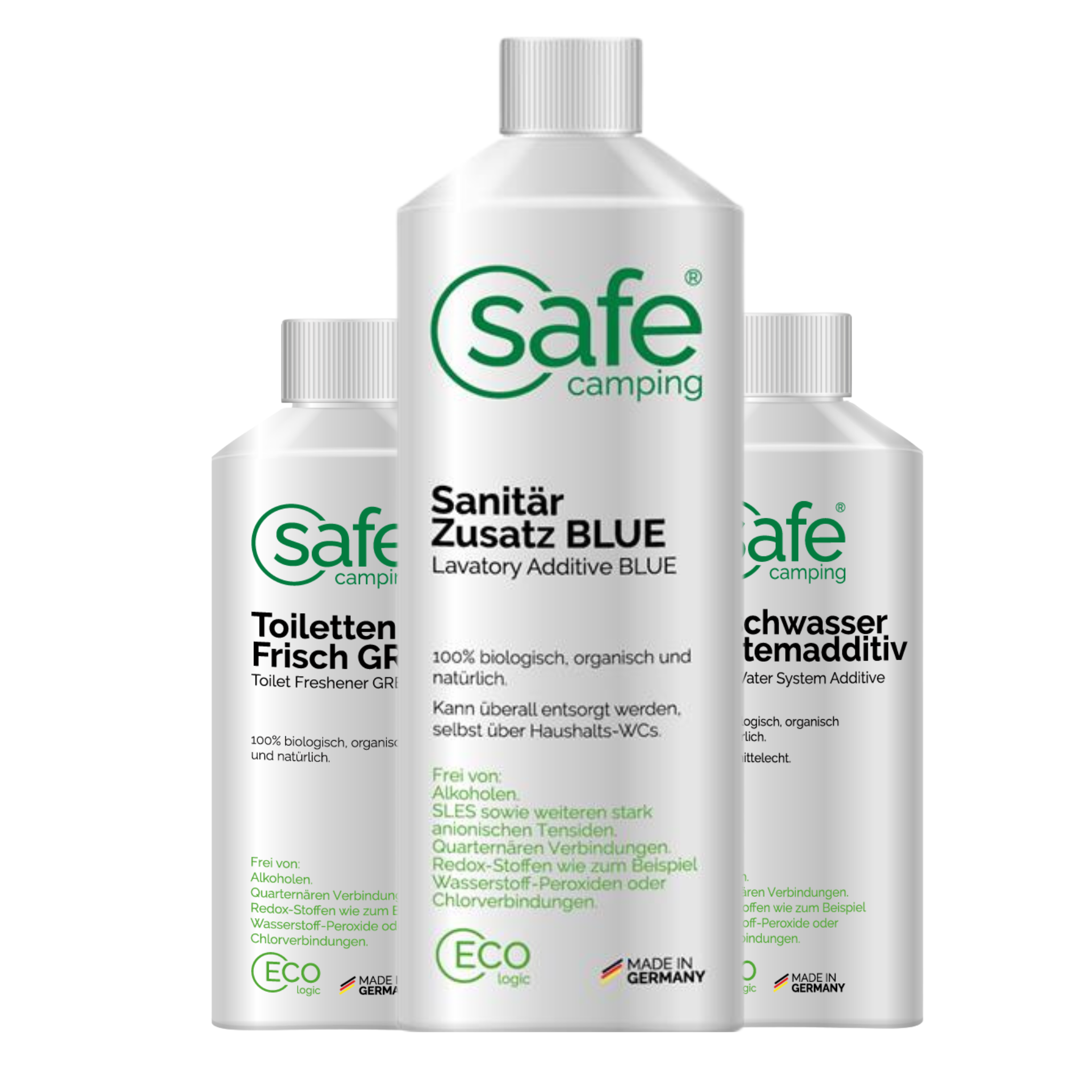 Die SAFE CAMPING Additive ermöglichen eine sichere und effektive Behandlung von Frisch- und Schmutzwasser. Nachhaltige und dauerhafte Reinheit und Pflege von Tanks, Leitungen, … werden über innovative biomimetische, d.h. der Natur nachempfundene Technologien sichergestellt. Alle Additive sind 100% organisch und biologisch abbaubar. Eine ökologische und verantwortungsvolle Lösung – einzigartig!
