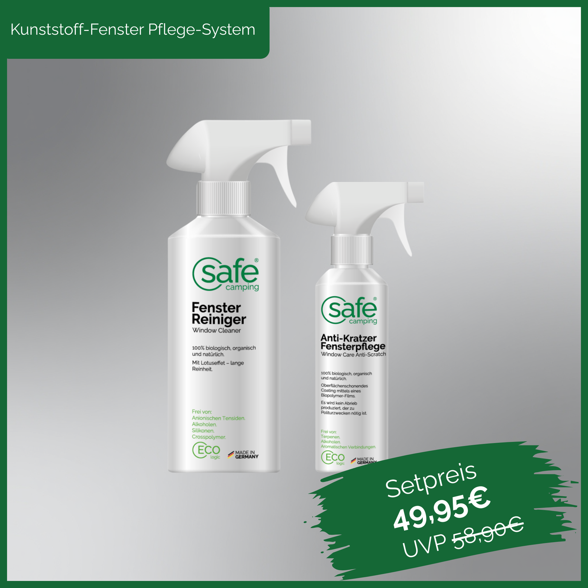 With theSAFE CAMPING Window ComboClear visibility is guaranteed in caravans, motorhomes, and extensions. The products are specially designed for acrylic glass, polyvinyl chloride, and flexible plastic glass.