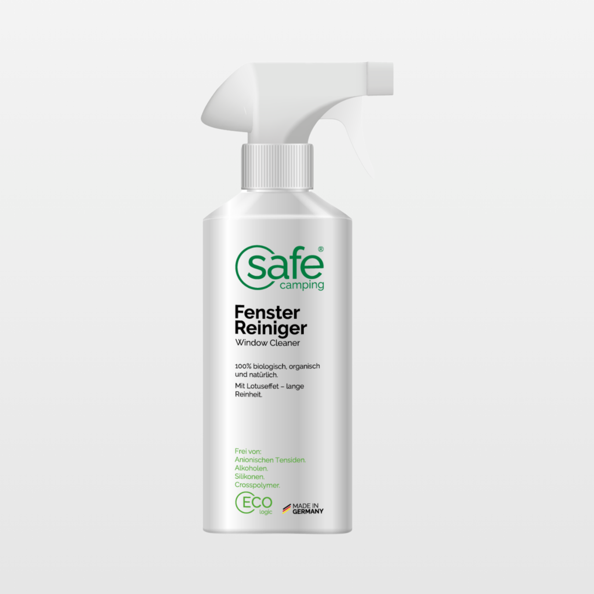 SAFE CAMPING Window Cleaner is a highly effective specialty cleaner for acrylic glass, polyvinyl chloride windows, and flexible plastic glass. It gently removes all types of dirt and has an antistatic effect. Its use makes dull panes and surfaces smooth again.
