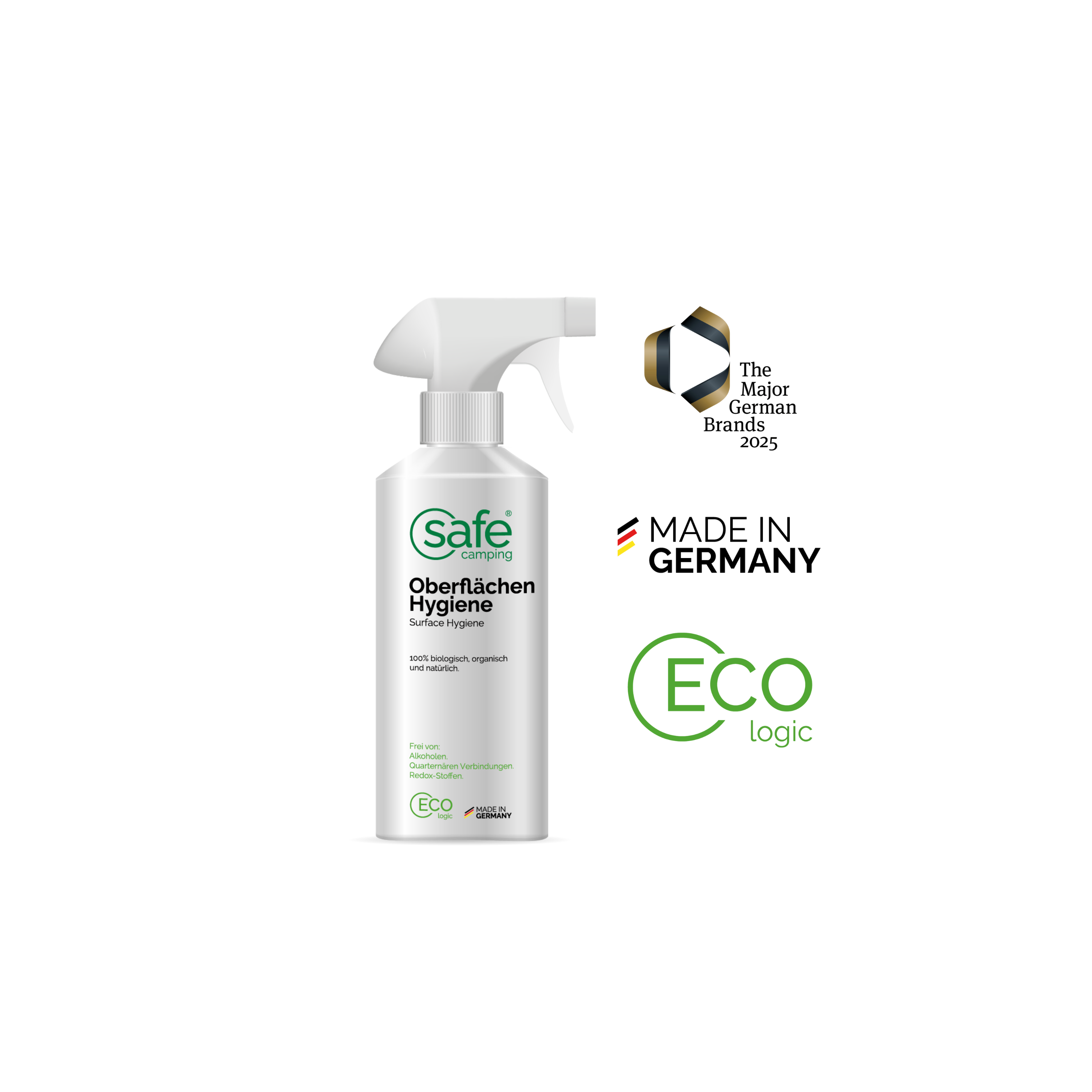 SAFE CAMPING hält die größten Gefahren aus Wohnmobil, Wohnwagen und textilen Anbauten in Schach. Feuchtigkeit als Grundlage vieler Verkeimungsgefahren wird ausgesperrt oder entfernt. Menschen und Tiere werden langanhaltend vor Krankheitserregern wie Keimen, Viren und Bakterien geschützt. Ein natürlicher Schutz, der 100% organische Biopolymere nutzt – und das Ganze vollkommen gesundheits- und umweltverträglich.