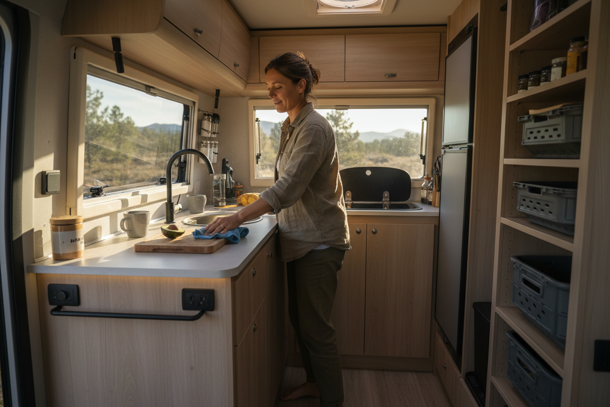 Das Mittel dient zur zuverlässigen Reinigung und Hygiene von Oberflächen in Wohnwagen, Wohnmobilen und sanitären Einrichtungen.