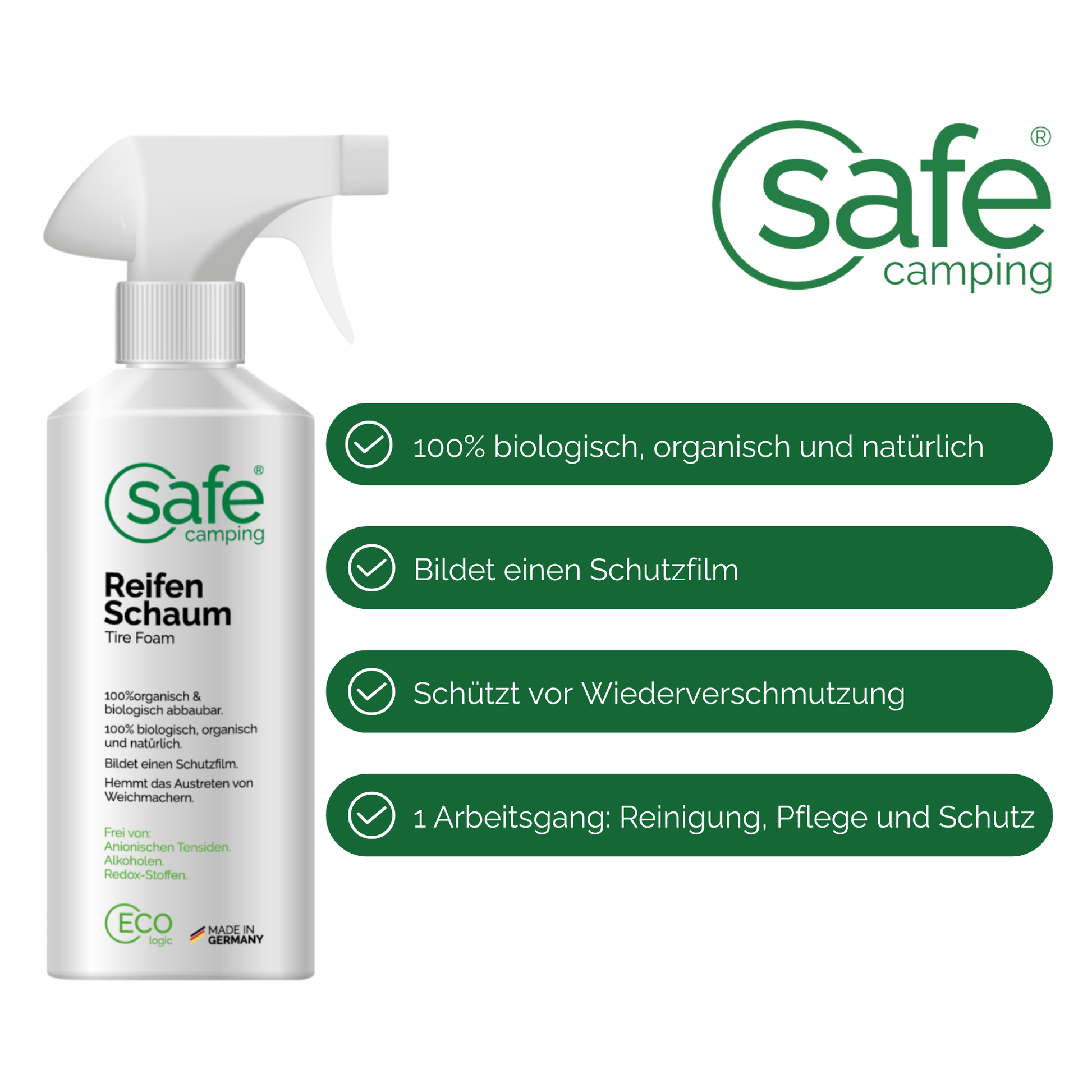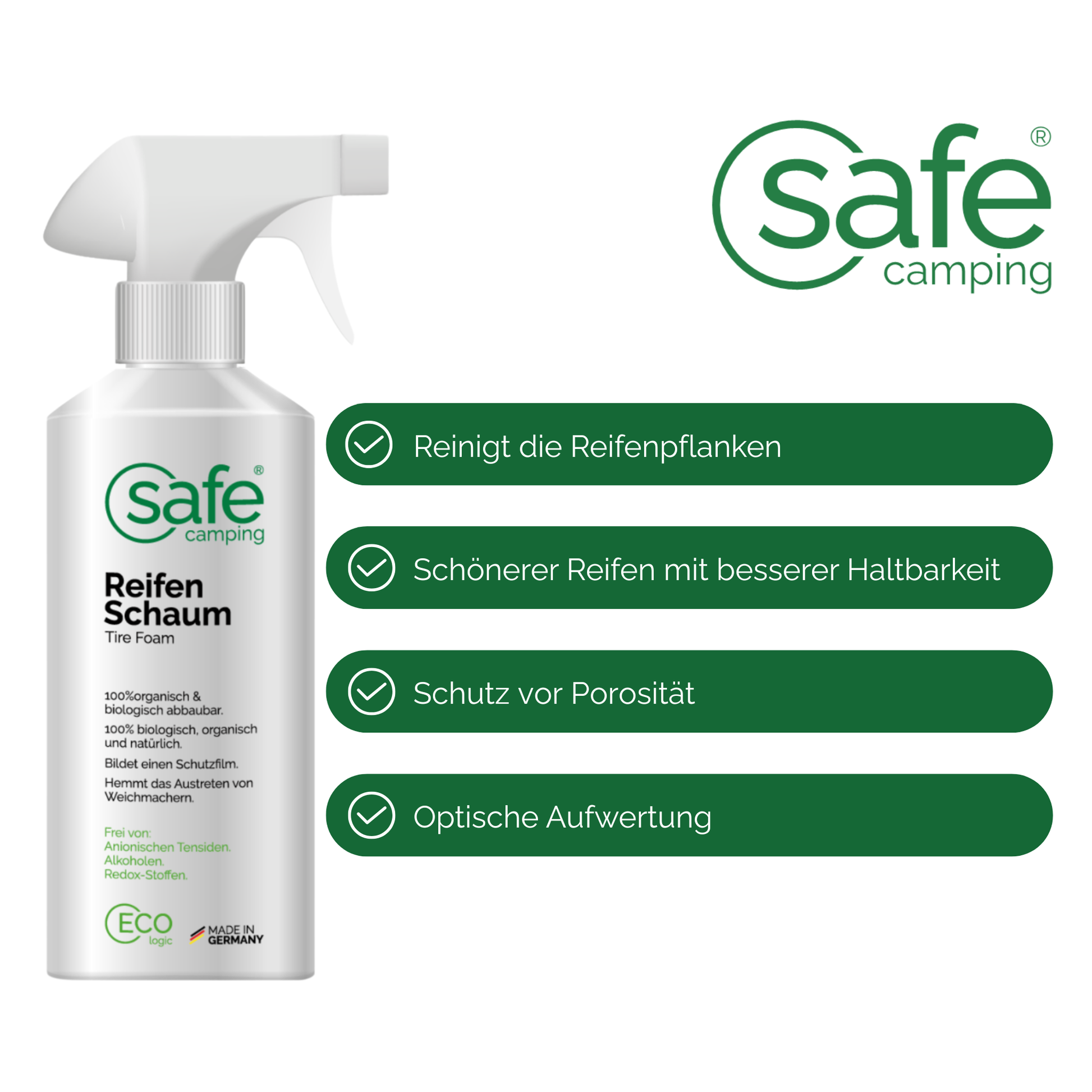 Was reinigt der SAFE CAMPING Reifen-Schaum genau?