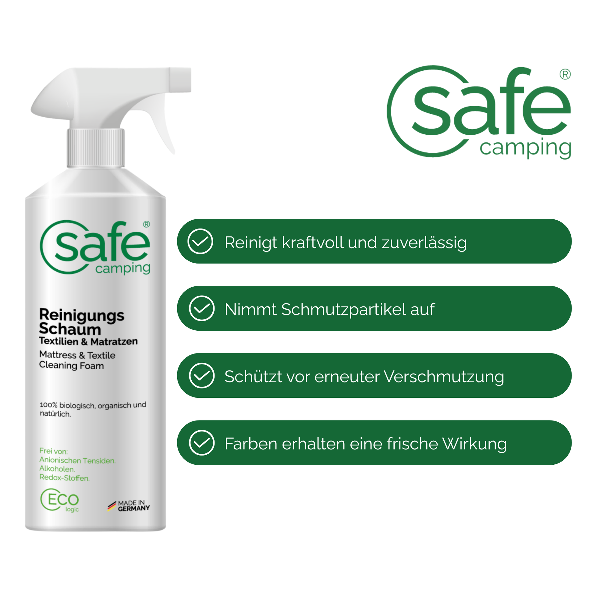Für welche Materialien ist der SAFE CAMPING Reinigungsschaum Textilien & Matratzen geeignet?